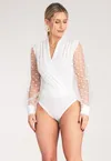 Body damskie z długim rękawem – efektowne rękawy z tiulu