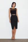 Bez nadmiernych zdobień, lecz pełna elegancji i klasy, ta spódnica z rozcięciem po mistrzowsku podkreśla kobiece kształty. Doskonale sprawdzi się zarówno podczas oficjalnych gal, jak i mniej formalnych wyjść. Zapinana na zamek z tyłu, gwarantuje łatwe ubieranie i doskonałe dopasowanie.