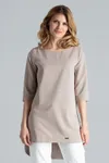 Odkryj funkcjonalność i estetykę beżowej tuniki, która z pewnością stanie się twoim ulubionym przedmiotem garderoby. Przeznaczona do codziennego użytku, ta sztuka odzieży łączy w sobie elegancję z komfortem. Asymetryczny krój dodaje unikatowej linii, a ¾ rękawy umożliwiają pełną swobodę ruchów przez cały dzień.
