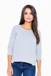 Model ten wyróżnia się rękawami 3/4, które dodają bluzce lekkości oraz umożliwiają noszenie jej zarówno w dni chłodniejsze, jak i te bardziej ciepłe. Okrągły dekolt tej eleganckiej bluzeczki damskiej otwiera szerokie możliwości dla akcesoryjnych eksperymentów - chusty czy naszyjniki będą tu doskonałym dodatkiem.