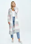 Ten konkretny model wyróżnia się ciekawym, wielobarwnym wzornictwem, które z łatwością dopasujesz do wielu stylizacji, zarówno tych codziennych, jak i oficjalnych. Dodatkowym atutem jest fakt, iż kardigan damski został wyposażony w praktycznie umieszczone kieszenie, które nie tylko zwiększają jego użyteczność, ale również dodają unikalnego charakteru całej stylizacji.
