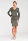 Idealna na cieplejsze sezon wiosenny i letni - stylowa przy jednoczesnym zachowaniu komfortu noszenia. Można ją łączyć z różnorodnymi dodatkami, od eleganckich po codzienne, kreując unikalne outfit'y na każdą okoliczność. Dodaj trochę elegancji do swojego asortymentu z sukienka z krótkim rękawem i sukienka z głębokim dekoltem od FIGL M1049!