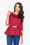 Rozkloszowana bluzka z paskiem w talii bordowa M417 rozmiar XL